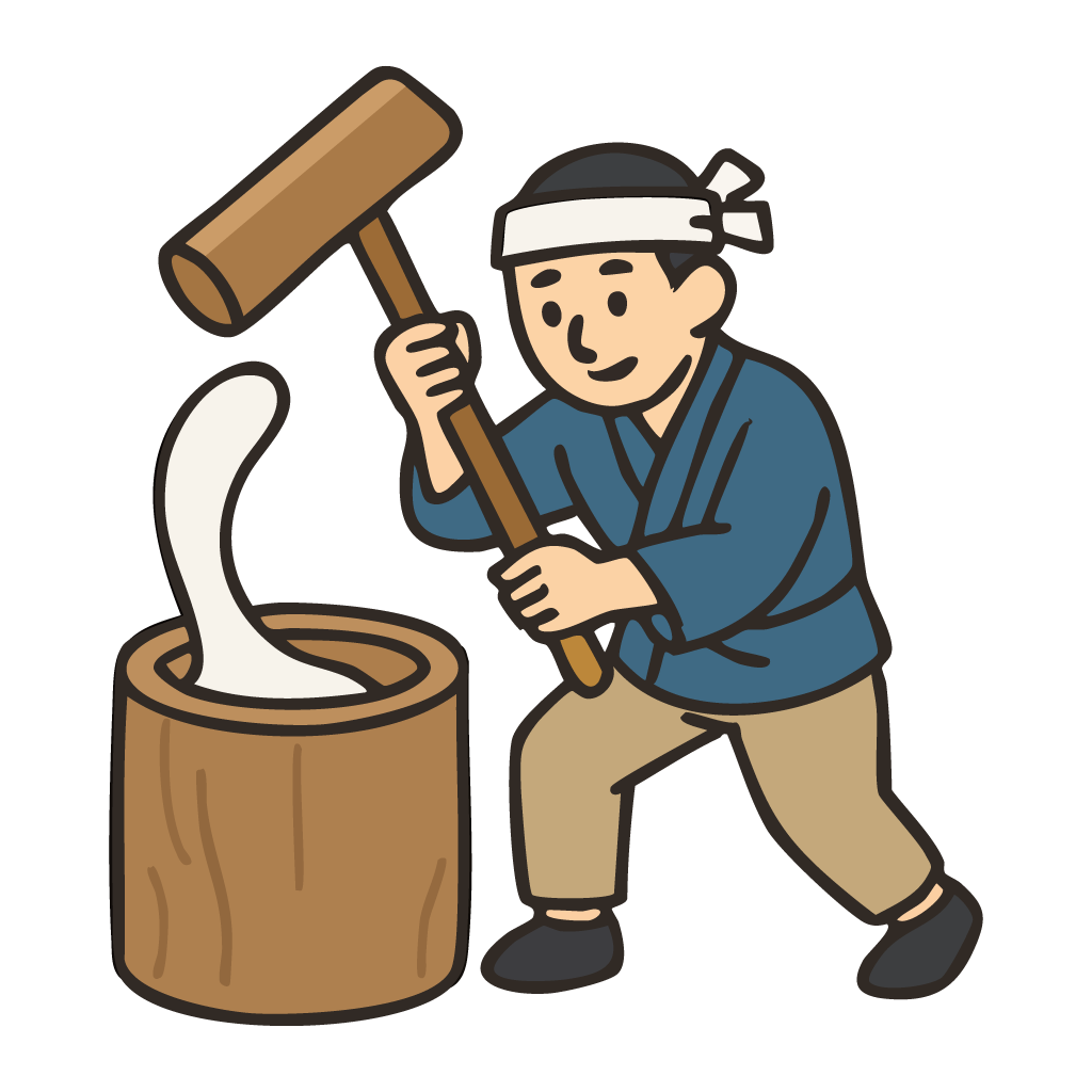 餅つきをする人のAIイラスト素材です。